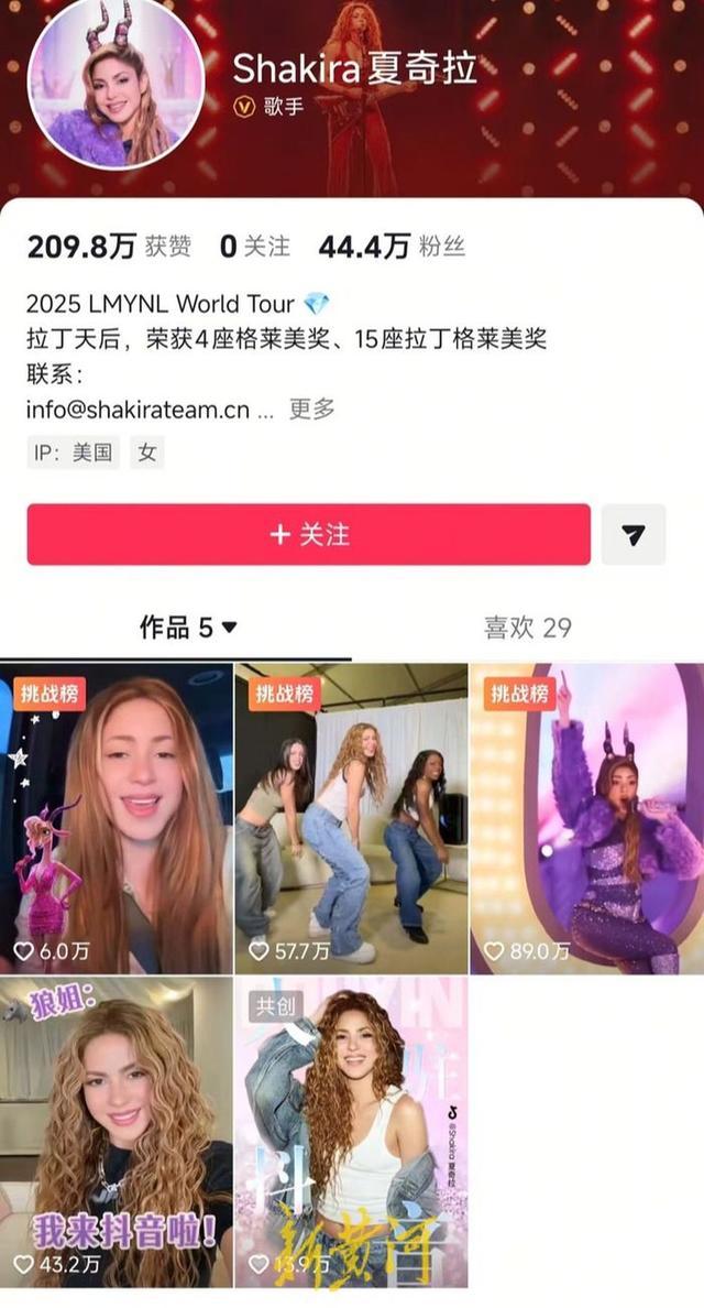 夏奇拉“本尊”点赞投降少年