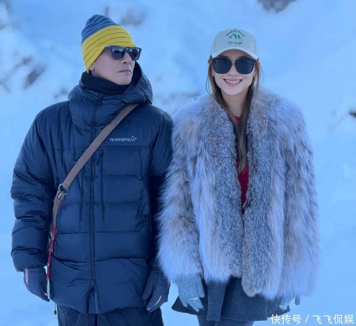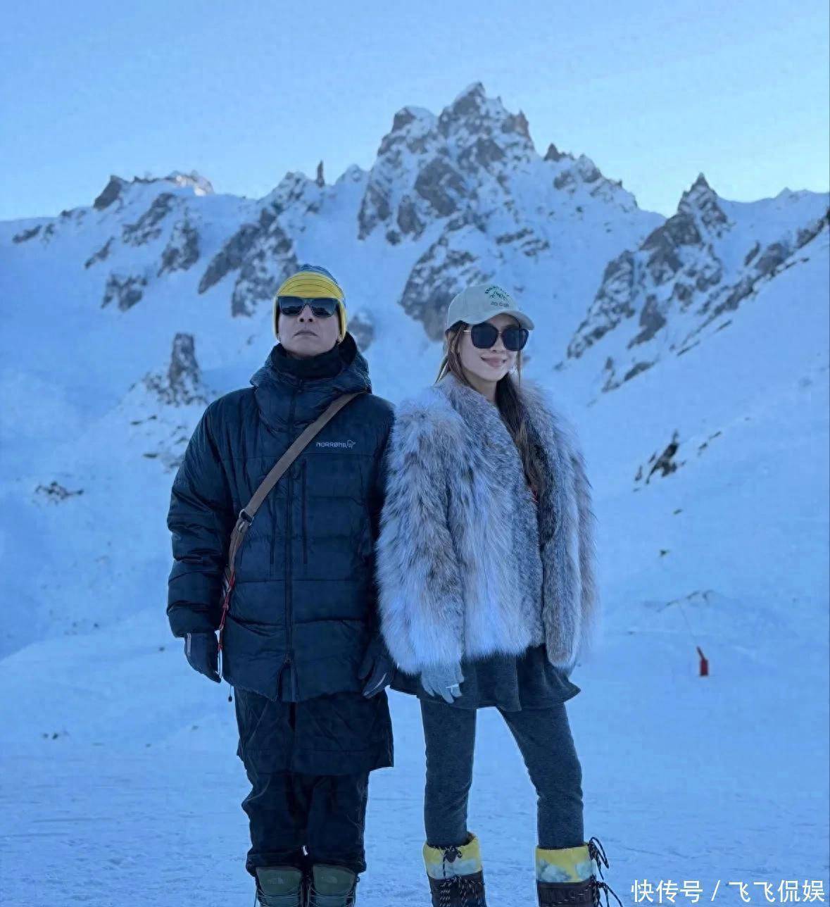 谁能思到,短短20天后,画风平直切换到“冬日遏抑”。网崇越过的最新相片里,两东谈主依然站在了雪山之巅,周围是白花花的积雪,空气里都透着寒意。这期间的穿搭和海边酿成了强烈反差:60岁的陈小春裹得像个“粽子”,两件棉袄叠穿,手套、领巾、帽子配皆,手指头都严密地藏在御寒手套里;44岁的应采儿则走的是“绚烂冻东谈主”道路,圆领薄衫打底,外面套一件豪侈狗尾续皮大衣,搭配灰色紧身打底裤,只戴了一顶棒球帽,贵气又轻佻。
